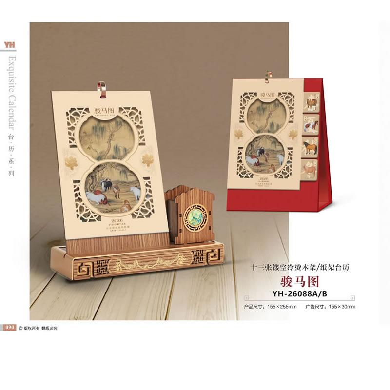 【材 ? ?料】:臺(tái)歷架:一般用紙為1000G或1200G灰板裱157G雙銅或特種紙;